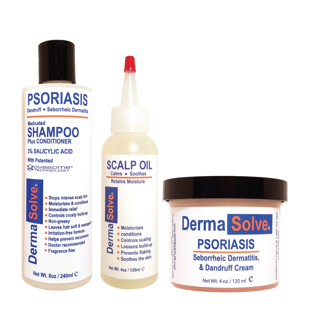 Alternate Dermasolve Scalp Oil and Treatment Cream each night and shampoo out in the morning with Dermasolve Shampoo.