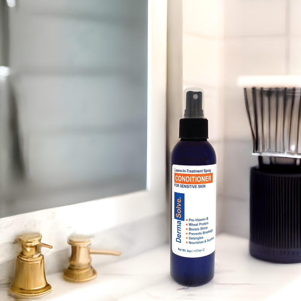 Dermasolve Leave-In Detangler Spray Conditioner is your key to soft, manageable hair and effortless styling. This multi-functional conditioner is designed to protect your hair, detangle knots, and control frizz, leaving you with beautifully styled hair throughout the day.The gentle formula of our Leave-In Detangler Spray Conditioner makes it an excellent choice for all hair types. Whether you have straight, curly, or textured hair, this product will work wonders, keeping your hair looking smooth, shiny, and tangle-free.