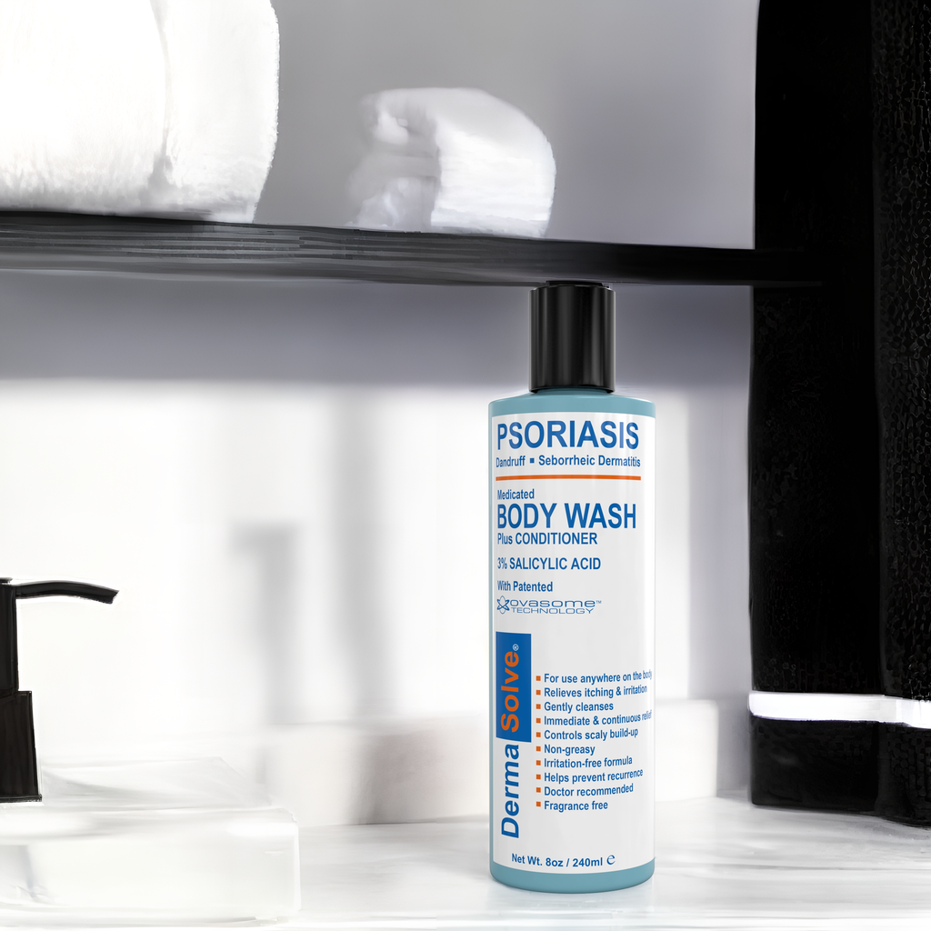 Introducing Dermasolve Psoriasis Bodywash, the doctor-recommended solution that effectively eliminates and helps control the recurrence of psoriasis and dry flaky skin. This medicated body wash is designed to provide immediate and continuous relief for dryness, flaking, irritation, itching, scaling, and redness, ensuring you can finally enjoy living in your skin again.
